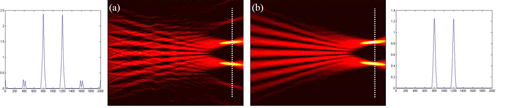 图3. 两种编码方法获得的非线性成像效果对比图,准多值化编码方法对高阶衍射的抑制效果明显。