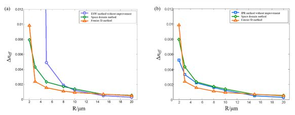 阅读次数: 发布时间:2023-11-21弯曲波导是集成光学不可分割的一部分,它能够将微小尺寸的非线性光学组件连接,改变光束的传播路径,大大提升了集成强度,同时还能够降低使用直波导连接器件制造成本及尺寸。弯曲波导的辐射、泄漏损失已被广泛研究。除了损耗问题外,弯曲波导还会导致模式的有效折射率发生变化。本文就是研究弯曲波导的折射率分布及传输特性,开发出一种计算折射率变化的有效方法。该方法比传统的FDTD方法节省了大量时间,并在小半径情况下开发了IPR方法。建立了近似IPR方法估计有效折射率增加与场中心沿径向偏移的关系。经验证,该估计方法能较好地吻合FDTD结果,同时可以方便快速地估算弯曲波导的有效折射率增量,可用于需要临界相位控制的情况。