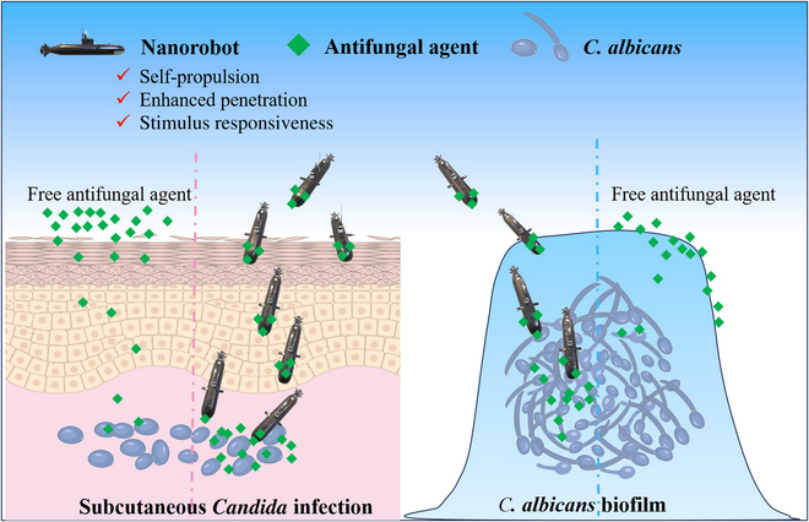 图1 纳米马达用于念珠菌感染治疗示意图