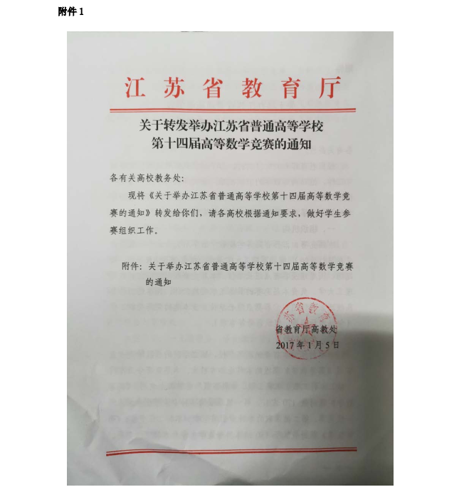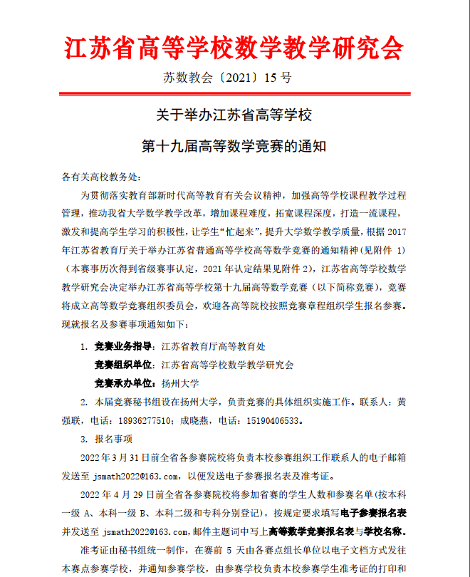 关于举办江苏省高等学校第十九届高等数学竞赛的通知