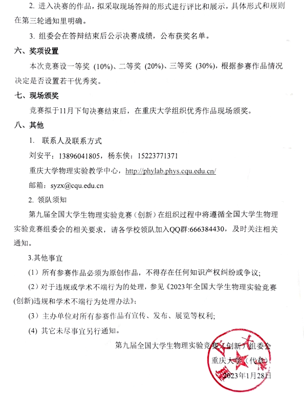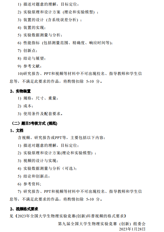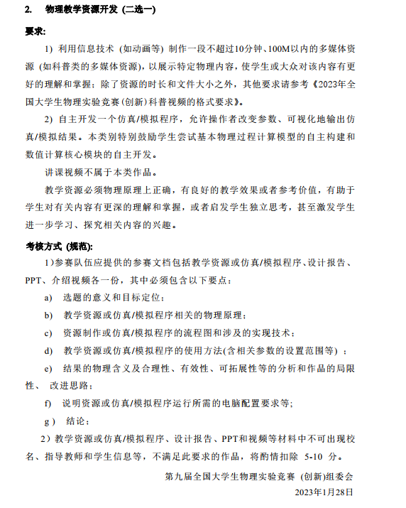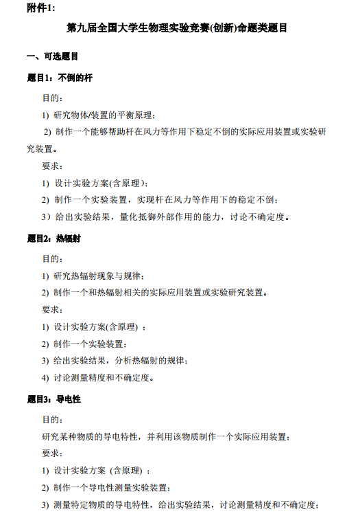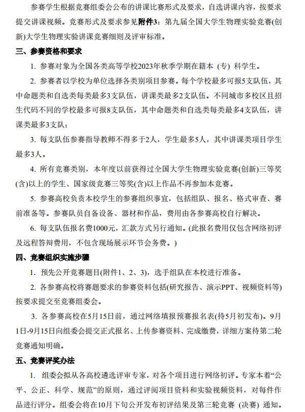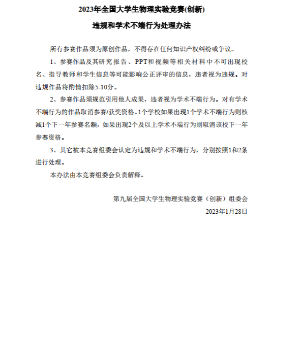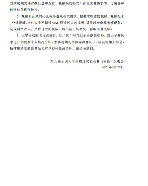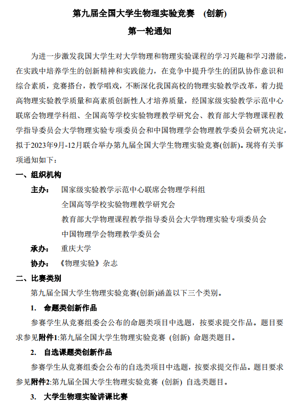 2023年第九届全国大学生物理实验竞赛第一轮通知