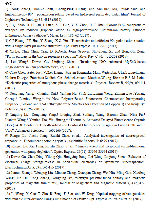 数理学院2017年发表的论文&专利